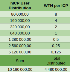 WTN will be distributed to nICP users following the tiers described below. A total of 4.48M WTN will be distributed to nICP stakers.